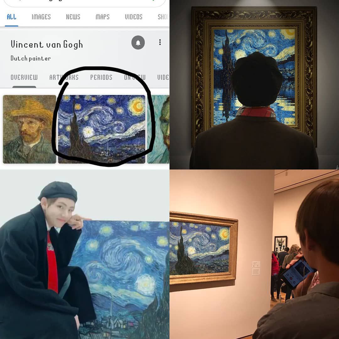 Có vẻ như Tae rất thích cái tranh này thì phải😆😆.Không biết ai muốn đi tham quan giống người kia nhỉ??🤔🤔