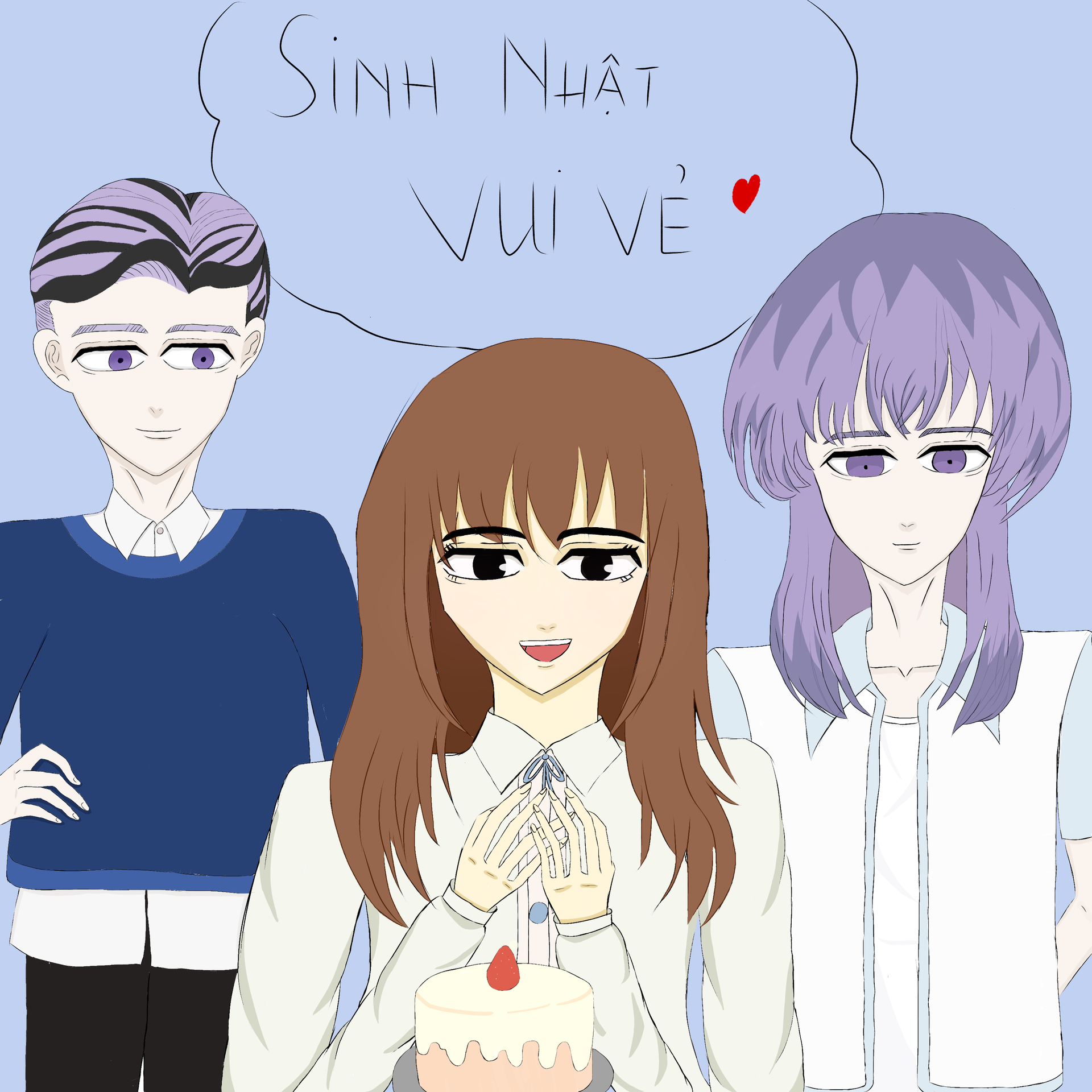 Hehe gia đình tui không có ai nhớ sinh nhật tui hết á cho nên tui mới tự vẽ một bức tranh xem như là tặng cho mình, tui sẽ vui hơn nếu các bác chúc toi đó:33 Yêu các cậu❤️