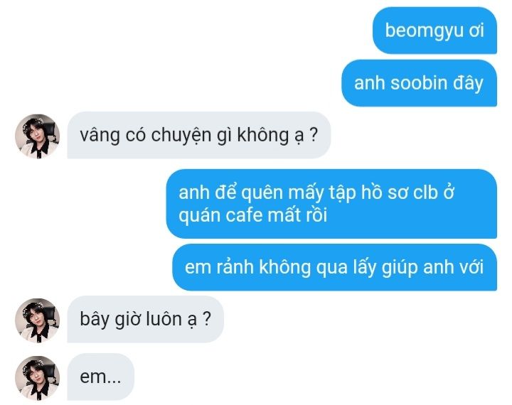 beomgyu nhìn soobin đang vỗ tay một cách khó hiểu, định nói gì đó thì yeonjun đã tiến tới.