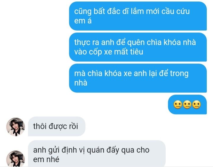 cậu phì cười.