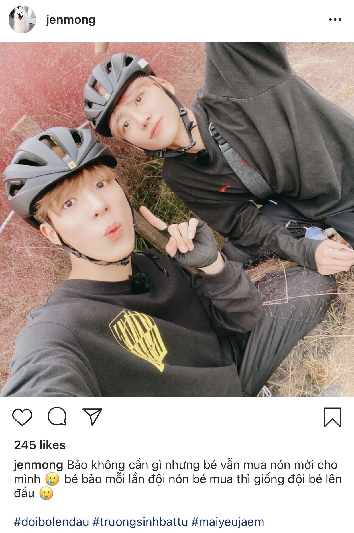 Bữa đó tui được ăn thịt bò, thịt nướng phủ phê luôn. Xong bé tặng tui cả nón nữa, nón đôi lận để tụi tui có động lực để đi cùng nhau xa hơn, cả về đường đạp xe lẫn đường đời.
