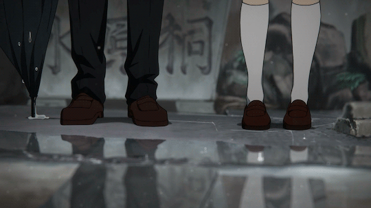 Em khựng lại ngay giữa lối vào hẹp của căn hộ - trên tay vẫn cầm chai nước đang uống dở, cổ họng lại như khô rát. Ngoài cửa, người đó đứng dựa vai vào tường, đôi mắt màu xanh lam ấy nhìn thẳng vào em như thể đã chờ đợi từ trước. Tóc hắn rối, vài sợi sẫm màu rơi xuống trán, lớp áo khoác sờn gấu ướt mưa, mùi khói nhè nhẹ phảng qua - là Dabi.